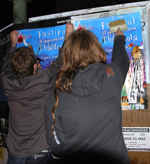 Après une heure de piscine et un bon petit resto, le trio des princesses est partit pour une tournée des panneaux d’affichage de Limoges. En effet le festival d’impro commence lundi !